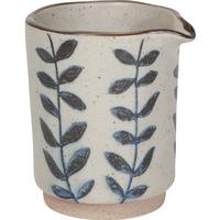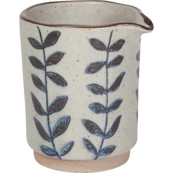 This rustic creamer has a 9-oz. capacity and is made of microwave-and-dishwasher-safe stoneware.