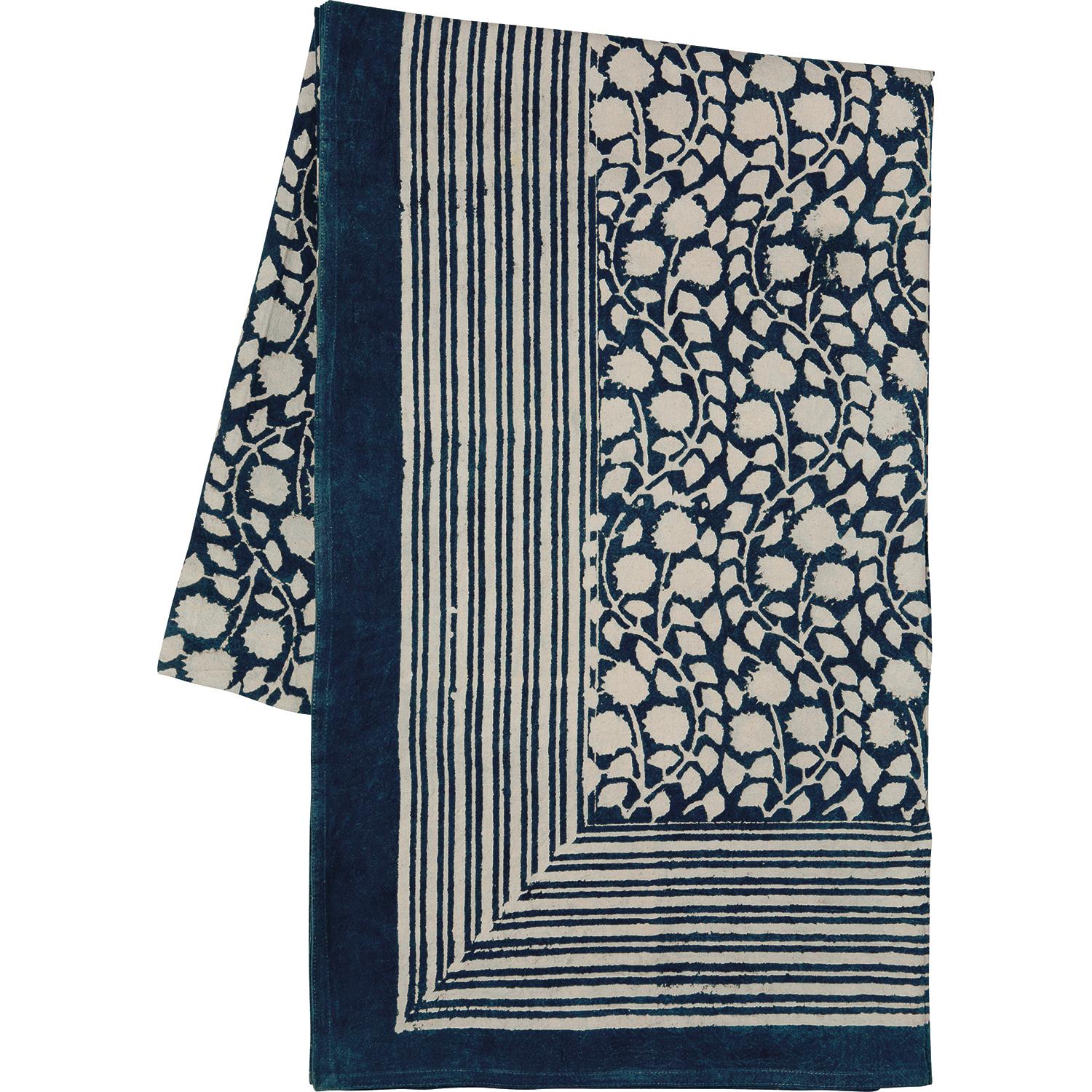 Hand block-printing holds a long and rich history in Indian textiles, with the skill being shared generation to generation. Each hand-carved wooden block is stamped in ink and applied with expertise to the fabric creating complex, interconnected patterns. The Vinebloom hand block-printed tablecloth measures 60” x 90”. Machine wash cold, tumble dry low.