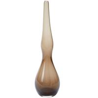 This elegant handmade glass piece employs subtle curves and tonal variations to create a stand-alone decorative accessory or a bud vase for tall stems, fresh or dried. 15.5” tall.