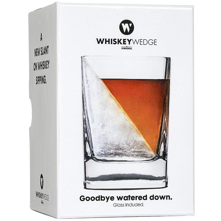 The Whiskey Wedge from Corkcicle provides a more artful way to enjoy your favorite spirits; perfectly chilled but not quickly watered down. Simply freeze water in the glass with the silicone ice form inserted; the ice will freeze in the shape of a wedge on one side of the glass. Then, add a dram of your favorite spirit and enjoy a perfectly cooled spirit. The nicely boxed Whiskey Wedge set consists of a classic double old-fashioned whiskey glass and a silicone ice form for creating the ice wedge.
