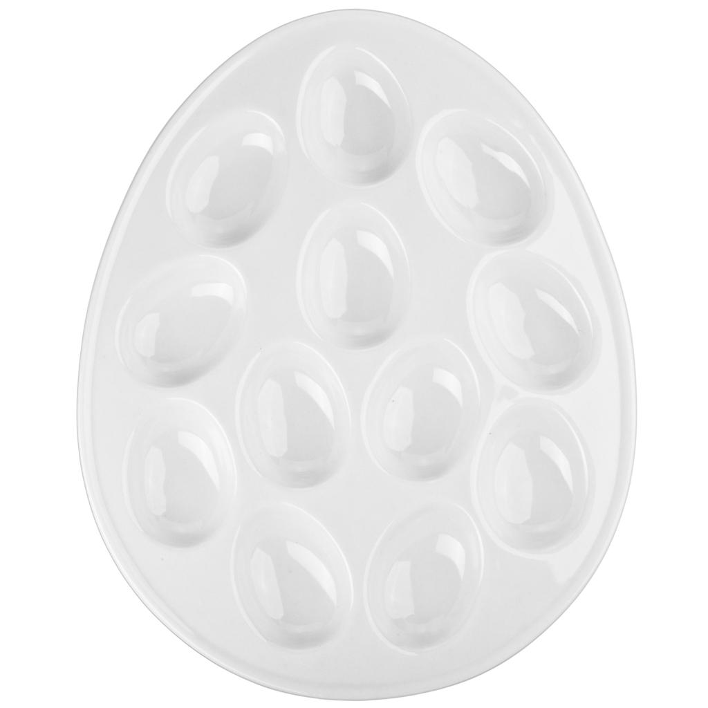 Classic white porcelain is the perfect material for showing off deviled eggs. Choose from regular and jumbo sizes. The smooth, heavy plates hold 12 and 24 eggs, respectively.