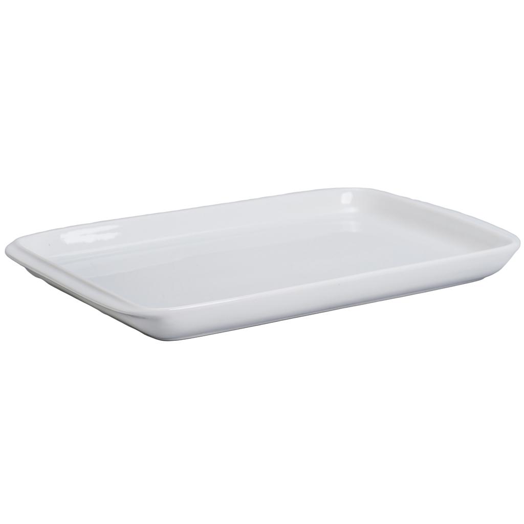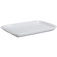 This classic platter features a defined edge and a one-inch depth for easier handling and serving. Made of porcelain, it's safe in the dishwasher, microwave, freezer, and oven, and measures 12.75" x 7.25".