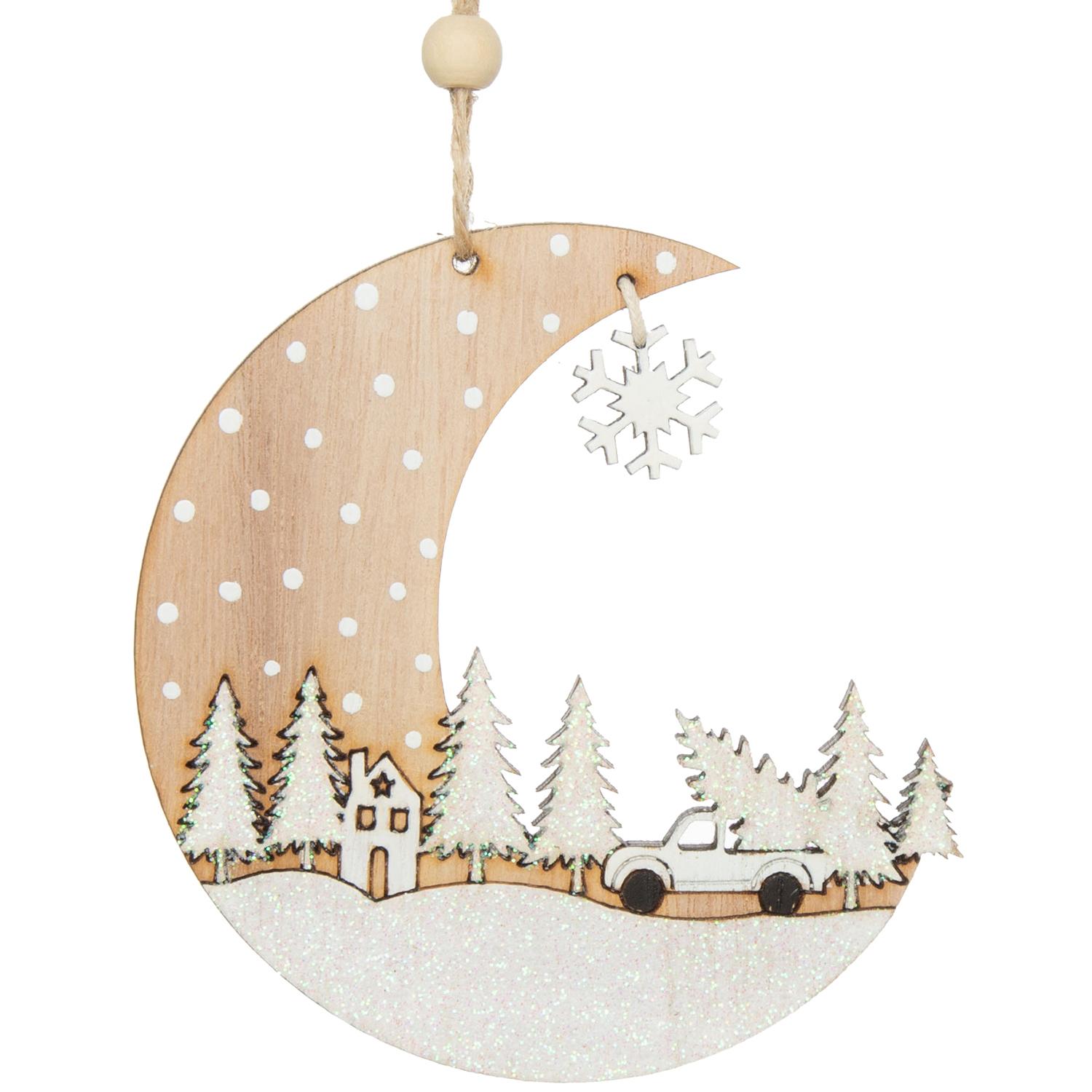 Wood Crescent Moon Ornaments