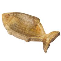 Hand-carved from solid mango wood, this not-so-little fishie measures 8" x 4.5".