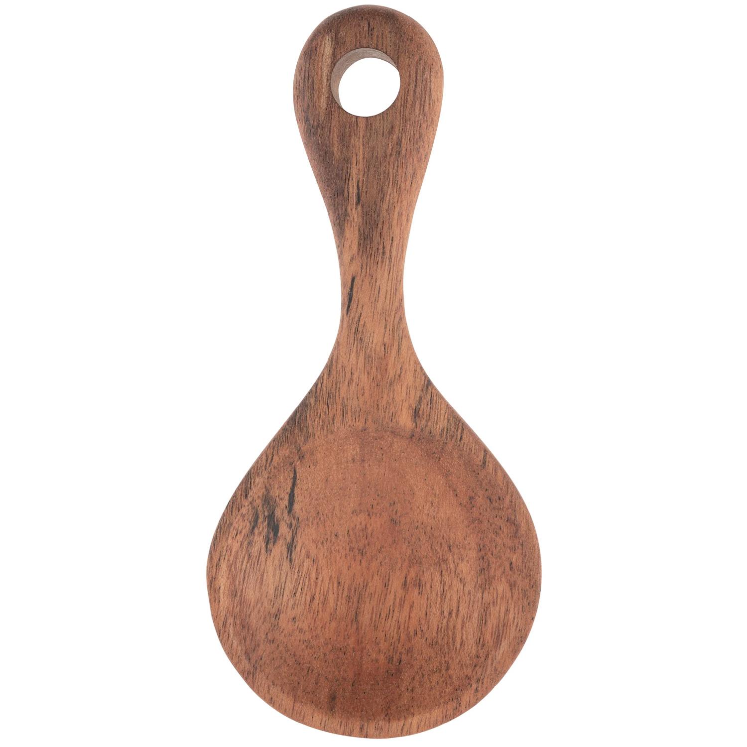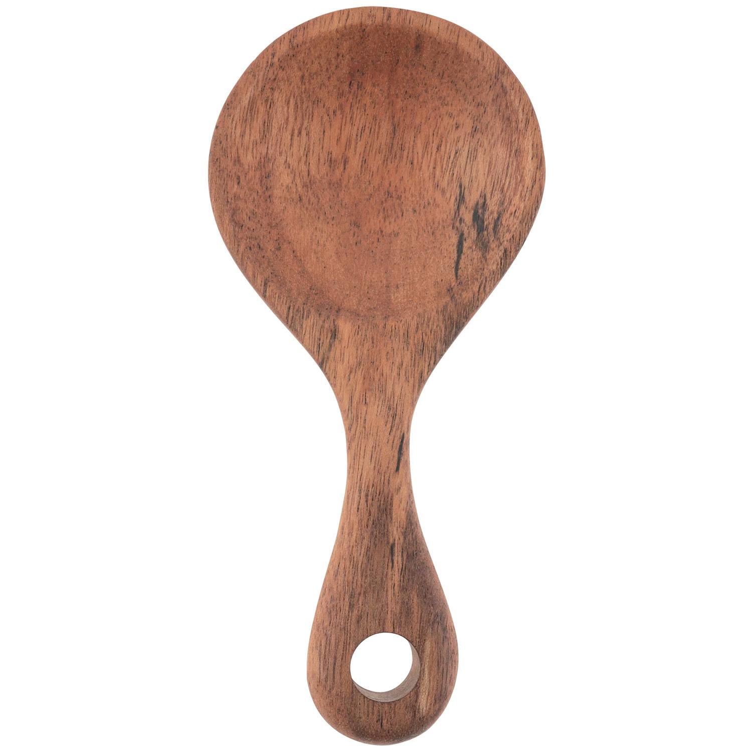 Made of smooth solid acacia, this rustic spoon measures 6.5" x 3". Hand wash only.