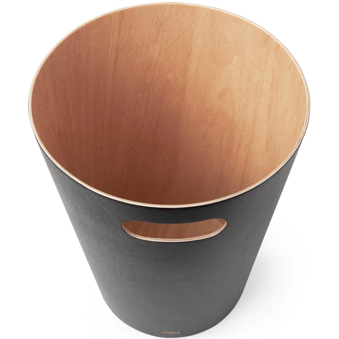 Made of treated wood, the Woodrow waste can from Umbra combines a natural wood interior with a stained finish on the outside. This super-stylish can measures 9" in diameter and 11" tall, with a capacity of 2 gallons. It's perfect for compact spaces like powder rooms, offices, or studies, and is easy to empty and move around thanks to the integrated handle. To clean, simply wipe with a damp cloth.