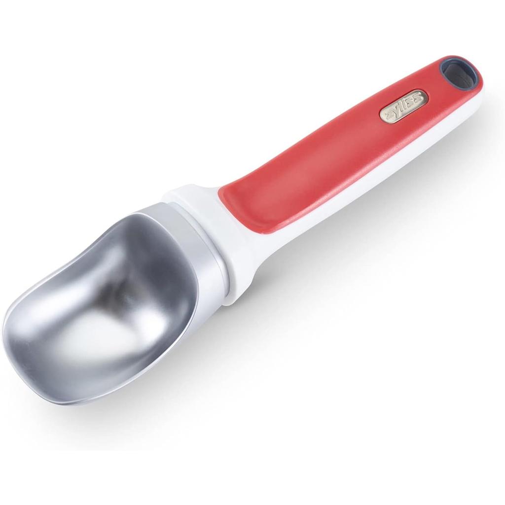 The Zyliss Right Scoop features a sturdy metal blade with sharp, sculpted edges for efficient scooping of ice cream, sorbet and frozen yogurt. Plus, the non-slip, ergonomic handle keeps your hands out of the cold and free from strain. 8" long, dishwasher safe, BPA-free.