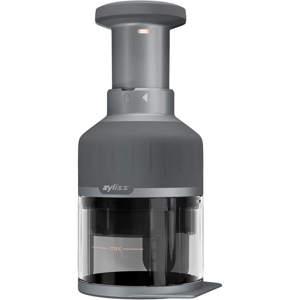 The Zyliss Zick Zick 3 food chopper features a sharp stainless steel blade that rotates with every press, delivering smooth, uniform cuts for vegetables, fruits, nuts, herbs, cheese, and chocolate. Chopped onions without tears! When you push down on the plunger, it extends and rotates wiper blades inside the chopping container, moving food around for consistent, uniform results with minimal effort. You can chop directly into the built-in container with its measurement markings, or remove the base use the Zick Zack directly on a cutting board. Clean up is easy; the blade, wiper, and container are all dishwasher safe. And, with a simple twist, the Zick Zack locks for compact storage. 8.7" tall, 5-year limited warranty from Zyliss.